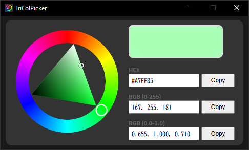 Tired of clunky, buggy color pickers? Meet TriColPicker, the lightweight tool born from a deep love for the classic 90s triangle color wheel! Produced by michyo in collaboration with General Assistant Gyaru Sono, this tool is designed to be your most reliable (and beautiful!) companion in your creative workflow.